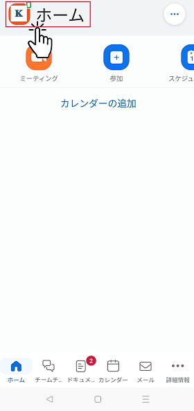 01 ZOOMアプリを開き、左上に表示される「ホーム」をタップ