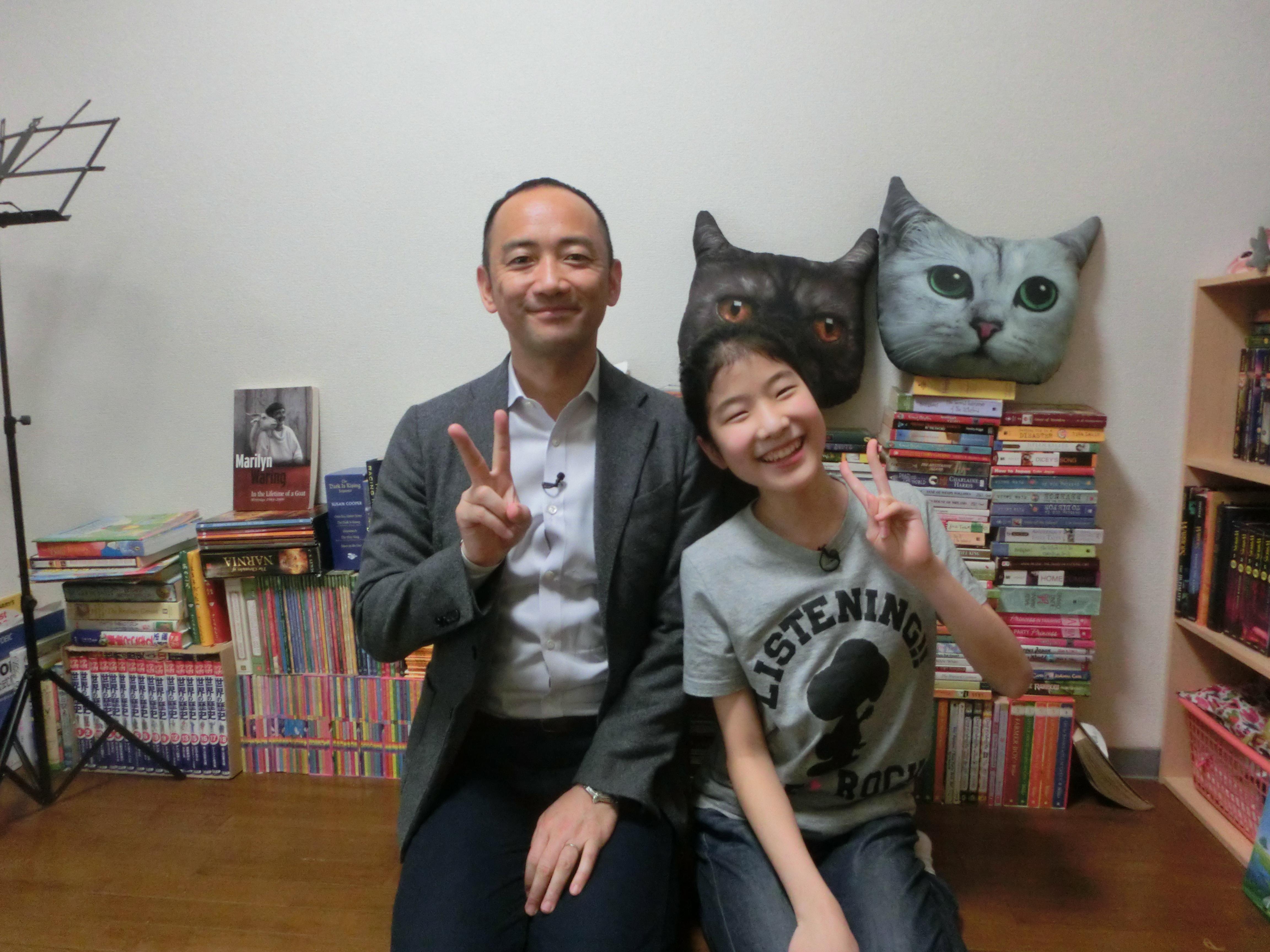 テレビ取材は私にとって楽しいこと尽くめの1か月でした!「ビビット」の取材で、大きなカメラやマイクに囲まれて初めてスカイプの撮影をする時、Avi(アヴィ)先生のコールが鳴るまで心臓の音がバクバクと聞こえるくらい緊張していました。でも、先生は全くいつもと同じ様子だったので私も徐々に落ち着くことができました。普段のレッスンではだらだらしていることもありますが、今回は「たくさん話さなきゃ!」と思い、気が付くと10分以上喋りっぱなしで、Avi(アヴィ)先生が「どこで止めようか」と、ちょっと困るくらいテンションが上がっていたようです。でも放映ではなんと初めの一言、”Today, I was able to come home early.~”しか入っておらず脱力・・・ヽ(・ω・)/ズコー。 「ちちんぷいぷい」では、いつもテレビで見ていた西靖アナウンサーに、1時間くらいインタビューされました。西さんがうちに入ってきた時、本当に一般人とは全く違うオーラがあって、母がいきなり「テレビで見るよりずっと素敵ですねっ!」とか本人に向かって言うのでかなり恥ずかしかったです。